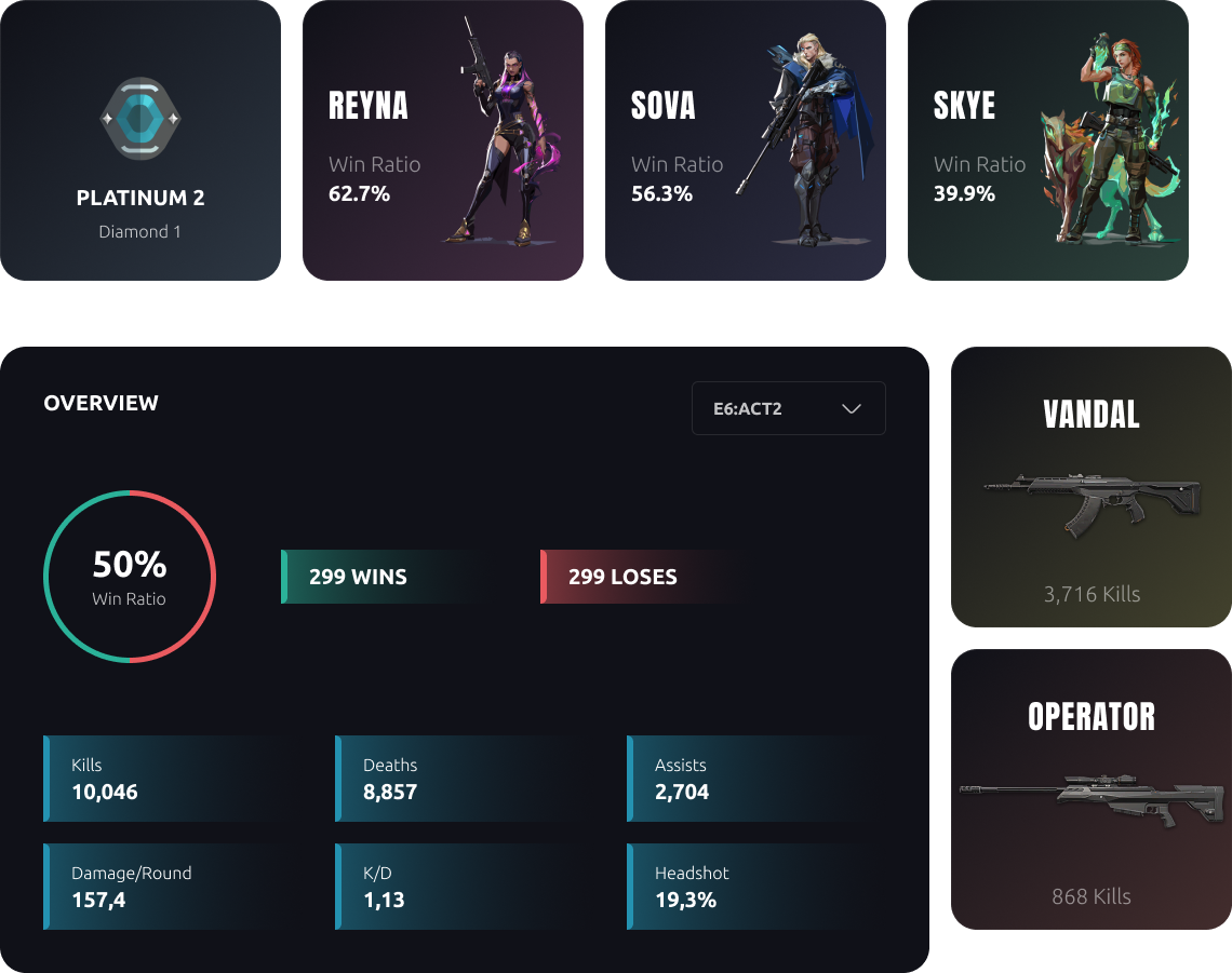 Discover your best agents, win ratio, combat score and best performance